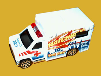 White, yellow letters "Matchbox Toy Show Hershey, PA/2005/Demo Model"
