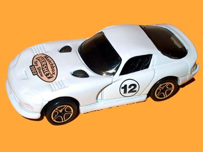 White, blue sides, "MBUSA Toy Show - On Site Demo Model" |