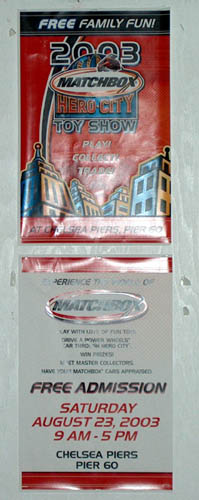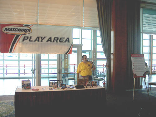 The Saturday show was well attended. The Matchbox CARnival flyers were all over the Chelsea Piers. I remember reading an ad about the show in a couple of different local weekly papers ahead of time. I also heard about it on 1010 WINS radio on the way to the show. Somone told me that there was mentioning of this show on the local TV as well. I did notice that there were less vendors this year as compare to last year. This means a bigger play area for the children. There was traffic all day long. I arrived around 9:30am and stayed till about 2:30pm before heading out to see the Giants/Jets pre-season game in East Rutherford, NJ. In the past, Mattel has restricted the purchase of show model to 4 models per person but this year there was no limit. I was able to find a good amount of items for my collection but 90% of them were code-2. I prefer to have more Code-1 models but there aren't that many out there. The children attractions included, a magician , a clown , a painting area , a huge play area , a face painting section and a free Matchbox car. This year, the free Matchbox models were put in two big garbage bags where the person would put their hand and pull out one model. This way the person did not know what they were getting. There was also a trivia table where Simon was announcing the trivia questions for either children or adults. There were a couple of huge "Matchbox Collectible" display cases filled with Matchbox models. I am not sure if these display cases came from Mattel's HQ or from Everett's museum. At the enterance there was a set of tables with silent auction items. Overall, the show was pretty good. Whatever the case is, the display cases are the best. I wish I could get one or two for my own personal display. There was traffic throughout the day. It was not one of those dead shows where dealers are talking to each other after 11:30am and waiting for 3:00pm to wrap up. I spoke to a couple of dealers who said that business was good for them.